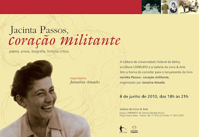 Aconteceu comigo: enviei por sedex, de Maceió para Salvador, quatro livros originais escritos nas décadas de 1940 e 1950 pela poeta Jacinta Passos, minha mãe: Nossos poemas, Canção da partida, Poemas políticos e A Coluna. Os leitores deste blog sabem que preparo a edição completa da obra dela, acompanhada de biografia e fortuna crítica, a ser publicada em breve pelas editoras da EDUFBA e Corrupio. A certo momento dos trabalhos, foi necessário comparar os poemas originais dos livros com o texto em page maker, pois nessa transposição costumam acontecer mudanças nos espaços entre as estrofes.